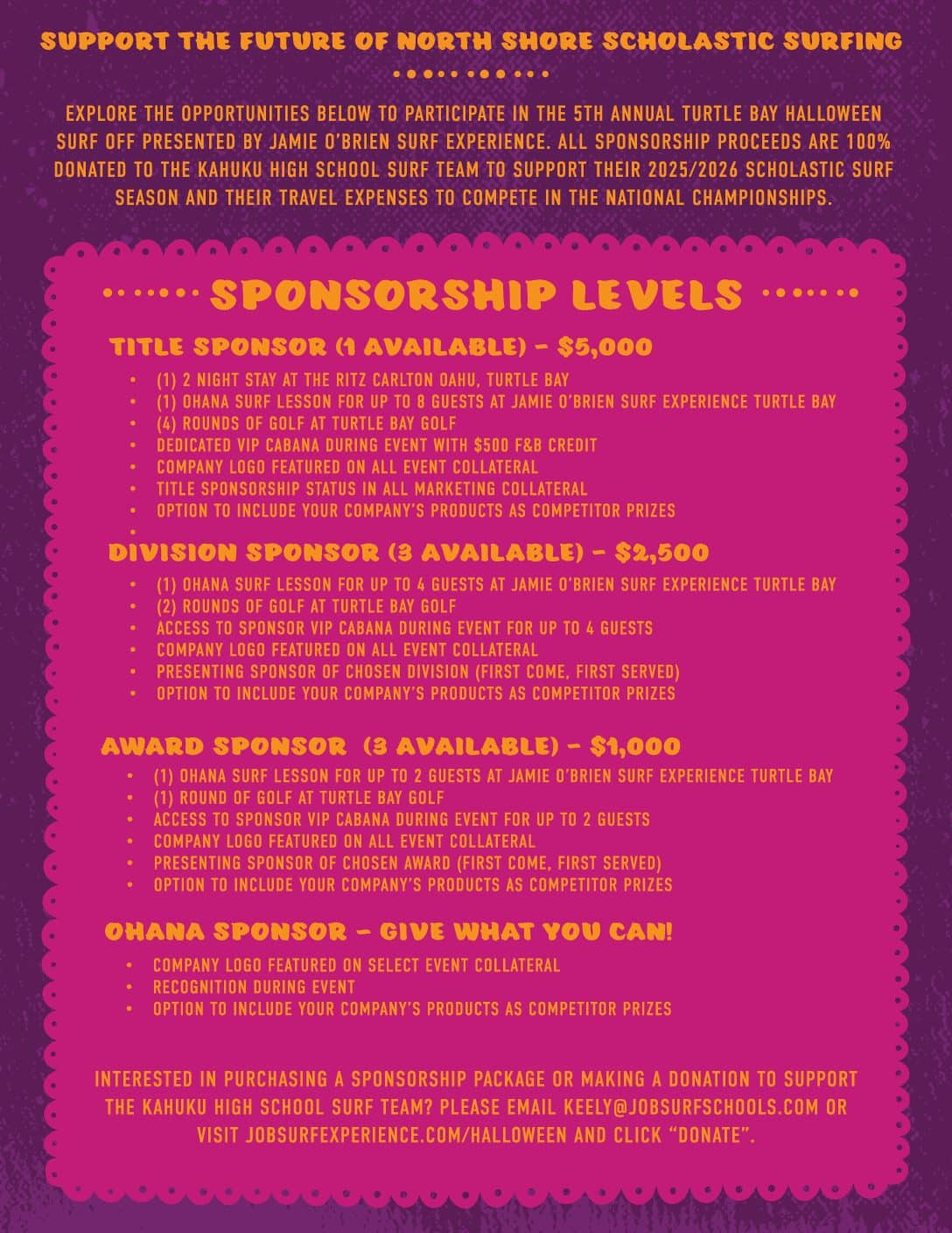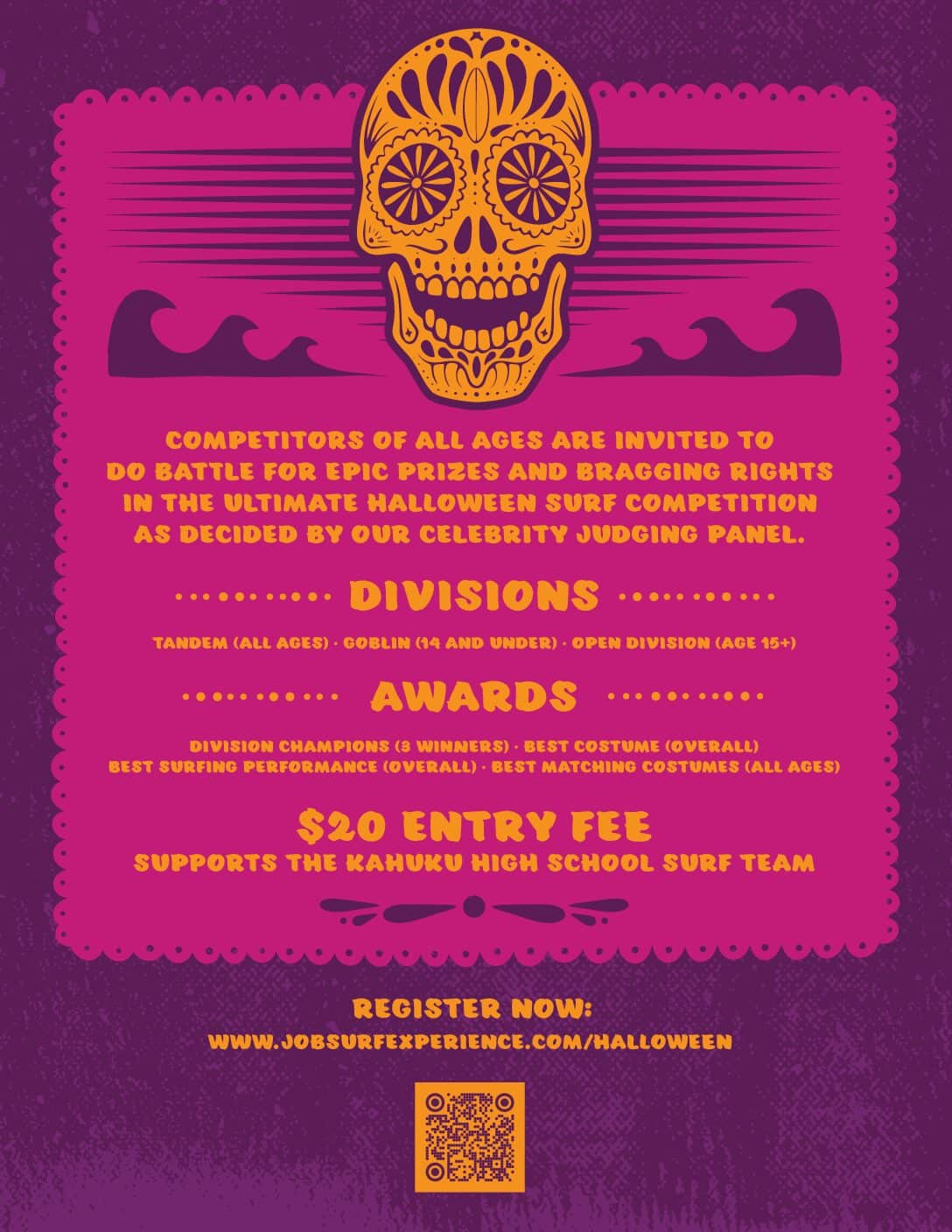 - Division Champions (1st place in each division) – A combined score of costume creativity and surfing performance